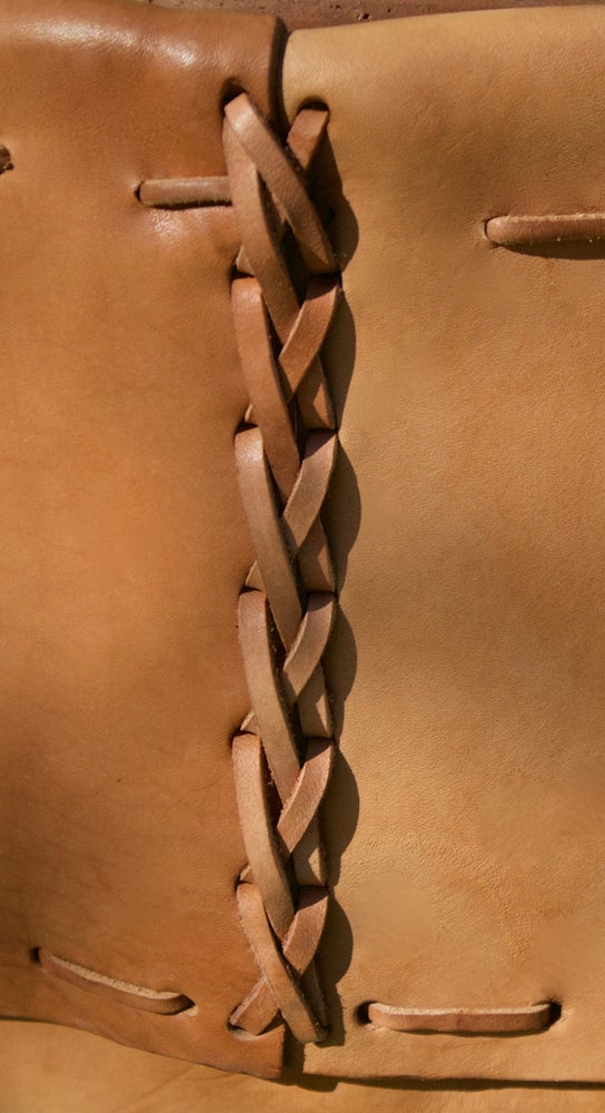 This suntanned and wet-shaped saddle leather planter-basket will bring some golden hours into your home.